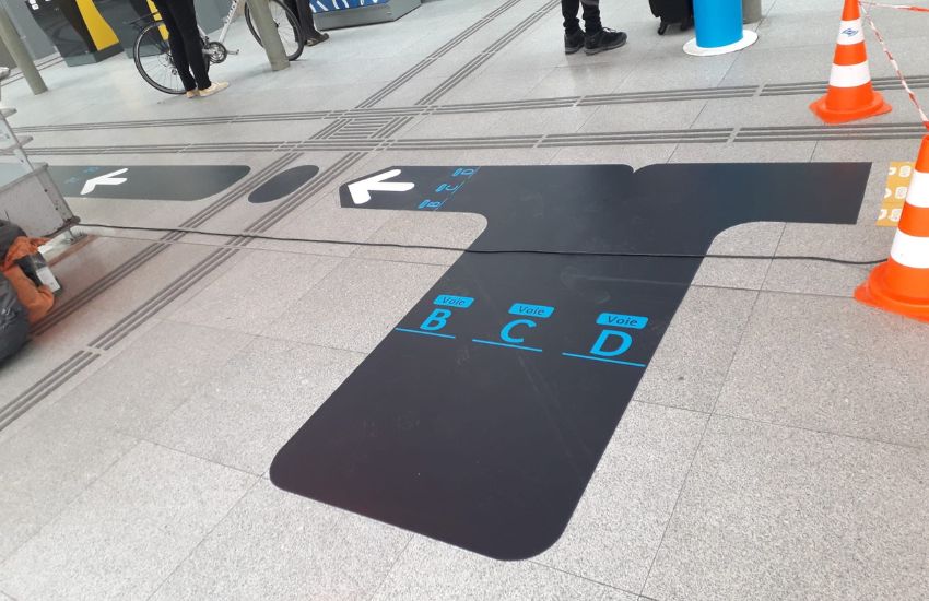 • Photo d'un marquage au sol dans une gare